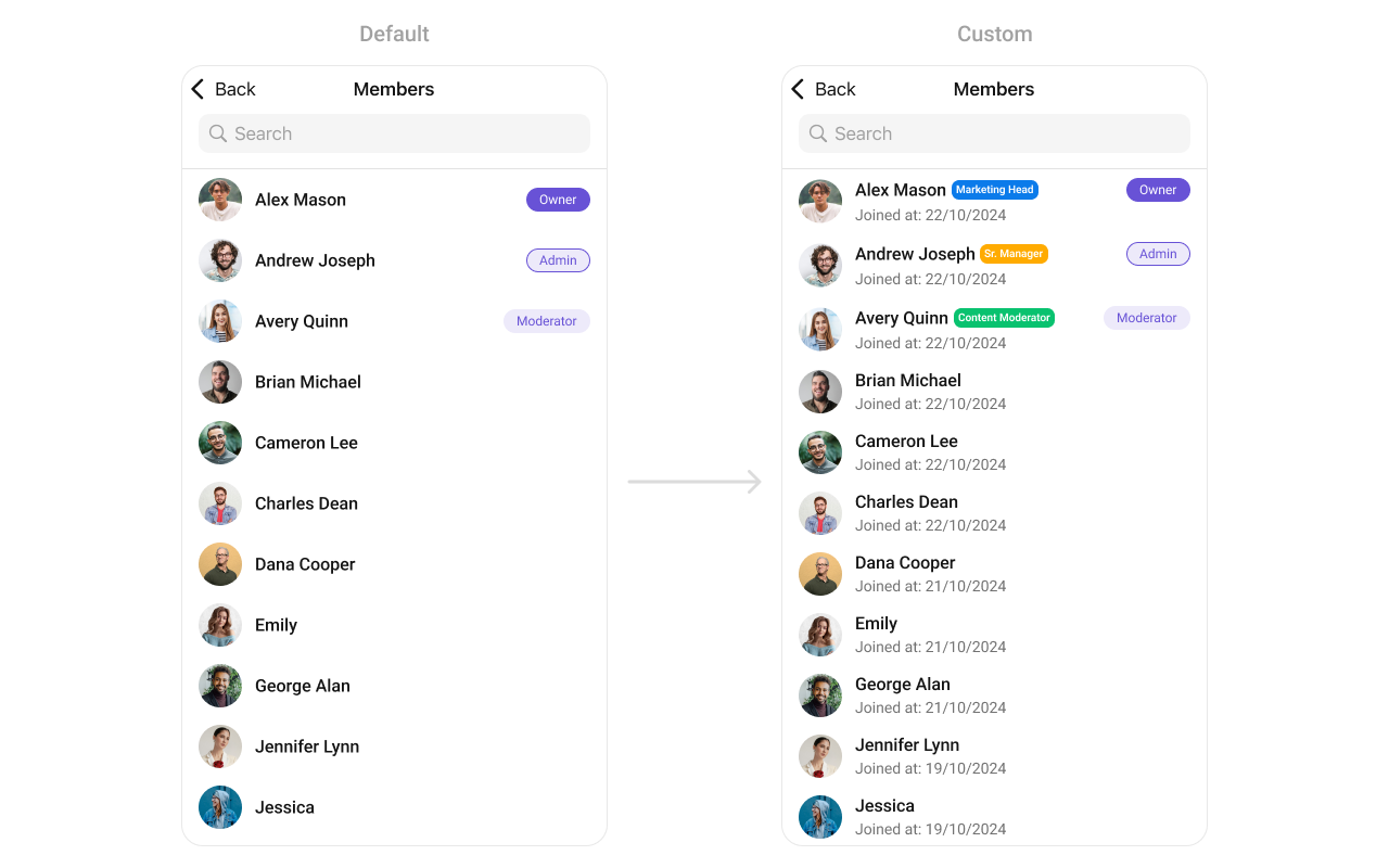 - You can customize the subtitle view for each GroupMembers item to meet your requirements