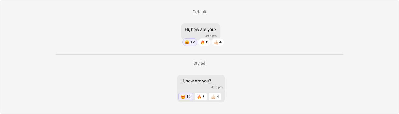 - Footer view: This is where the reactions are displayed. It’s located at the bottom of the Message Bubble.